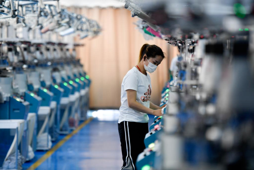 4月21日,工人在浙江诸暨一家袜业有限公司的智能工厂工作。新华社记者 黄宗治 摄